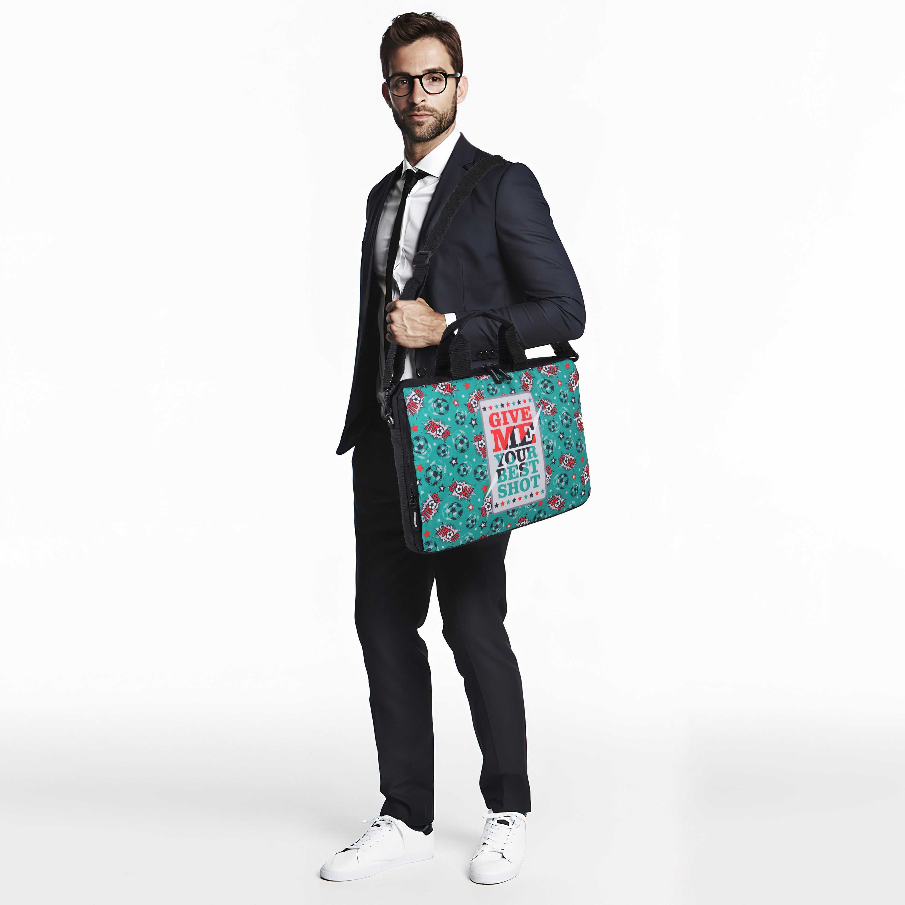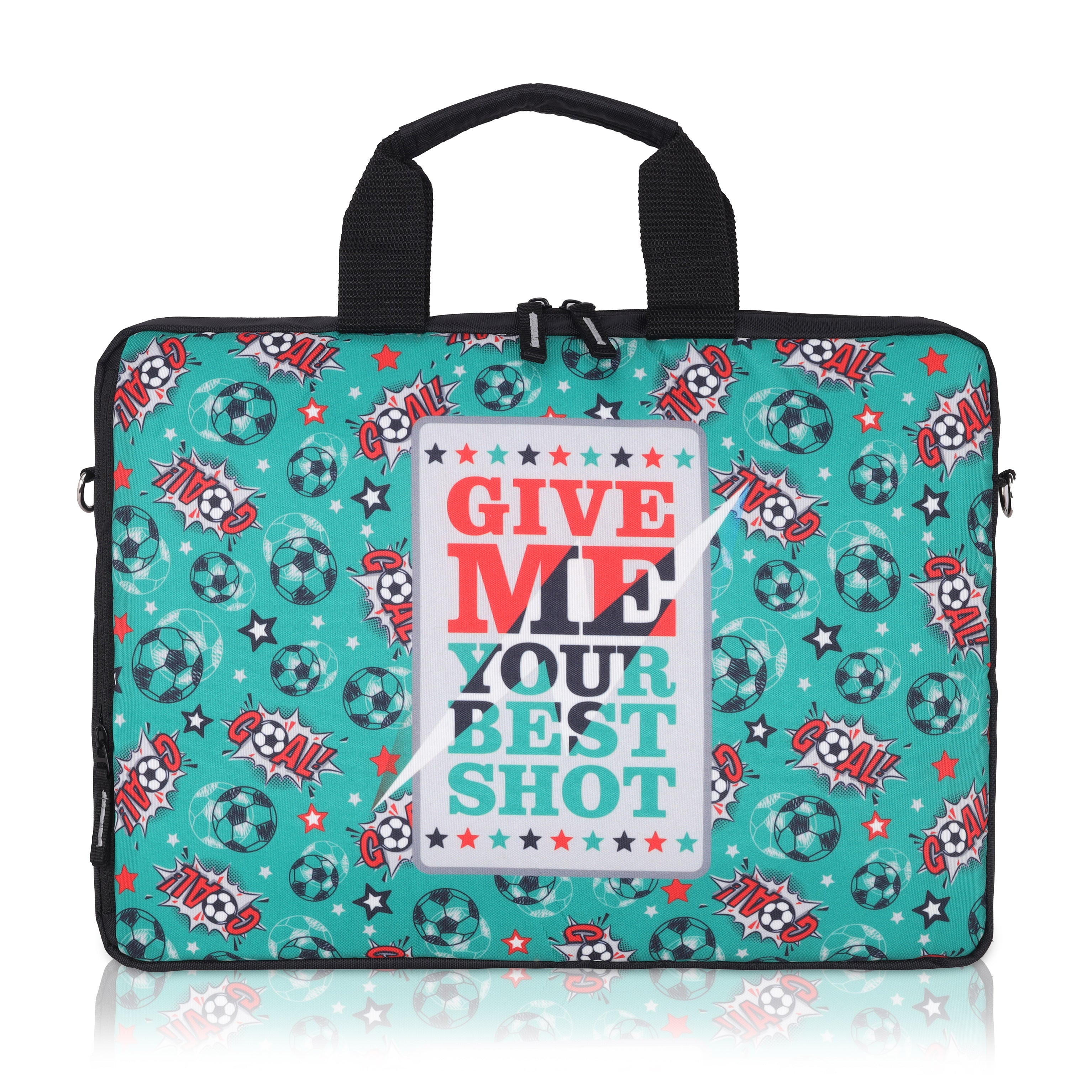 Step into school or the office with bold energy and sporty vibes with the Echo Boomers Laptop Sling Bag. Designed with a vibrant soccer-inspired theme and the empowering quote "Give Me Your Best Shot", this 15-inch messenger bag brings motivation and fun to your daily routine.